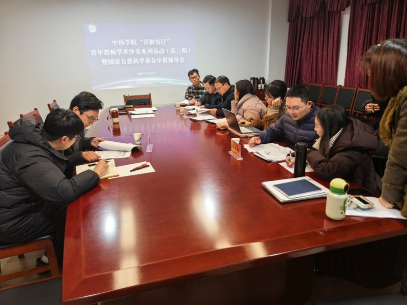 为进一步提升学院教师国家自然科学基金申报质量,助力科研项目高质量落地,2026年1月15日上午,学院“青椒客厅”青年教师学术沙龙活动暨2026年度国家自然科学基金第三轮申报辅导会在丰盛楼101会议室成功举办。本期活动特邀中西医结合学院陶伟伟教授,药学院刘鄂湖教授、陈乾乾副教授为学院教师“一对一”指导。