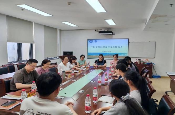 6月14日下午,中医学院2024届毕业生座谈会在丰盛楼526会议室召开。全体院领导、毕业班辅导员、班主任以及2024届本研毕业生代表参加座谈会。会议由院党委副书记周琼主持。