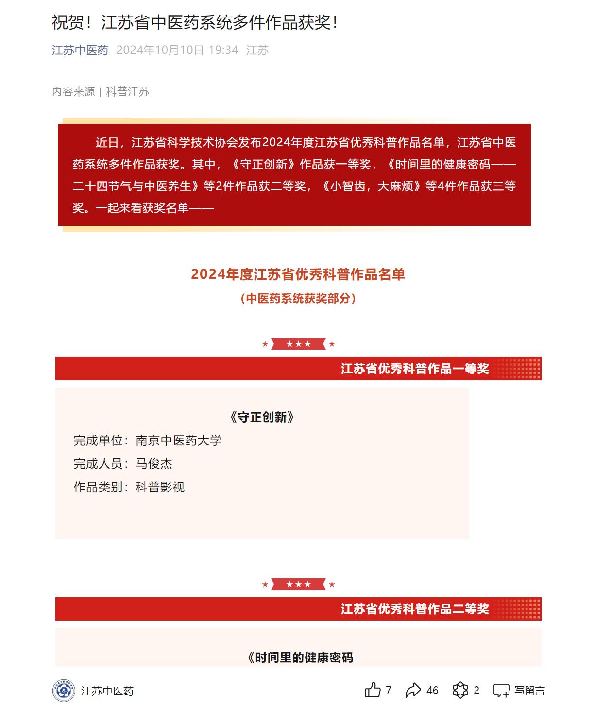 江苏中医官微链接:https://mp.weixin.qq.com/s/pnMPK9Azz-lvomAL7jE_1Q