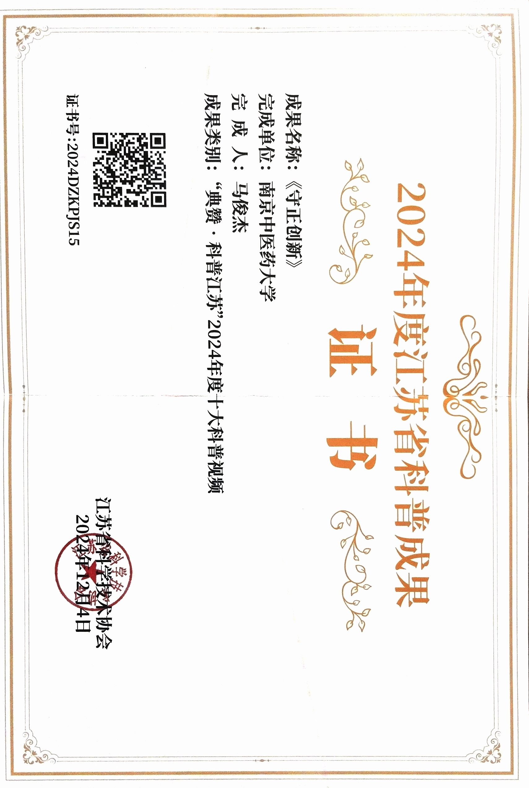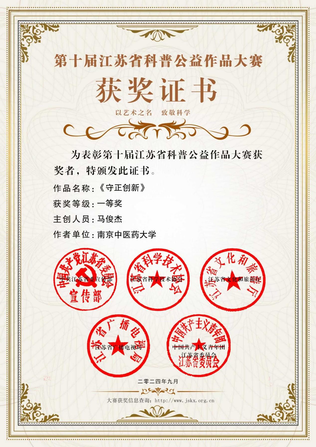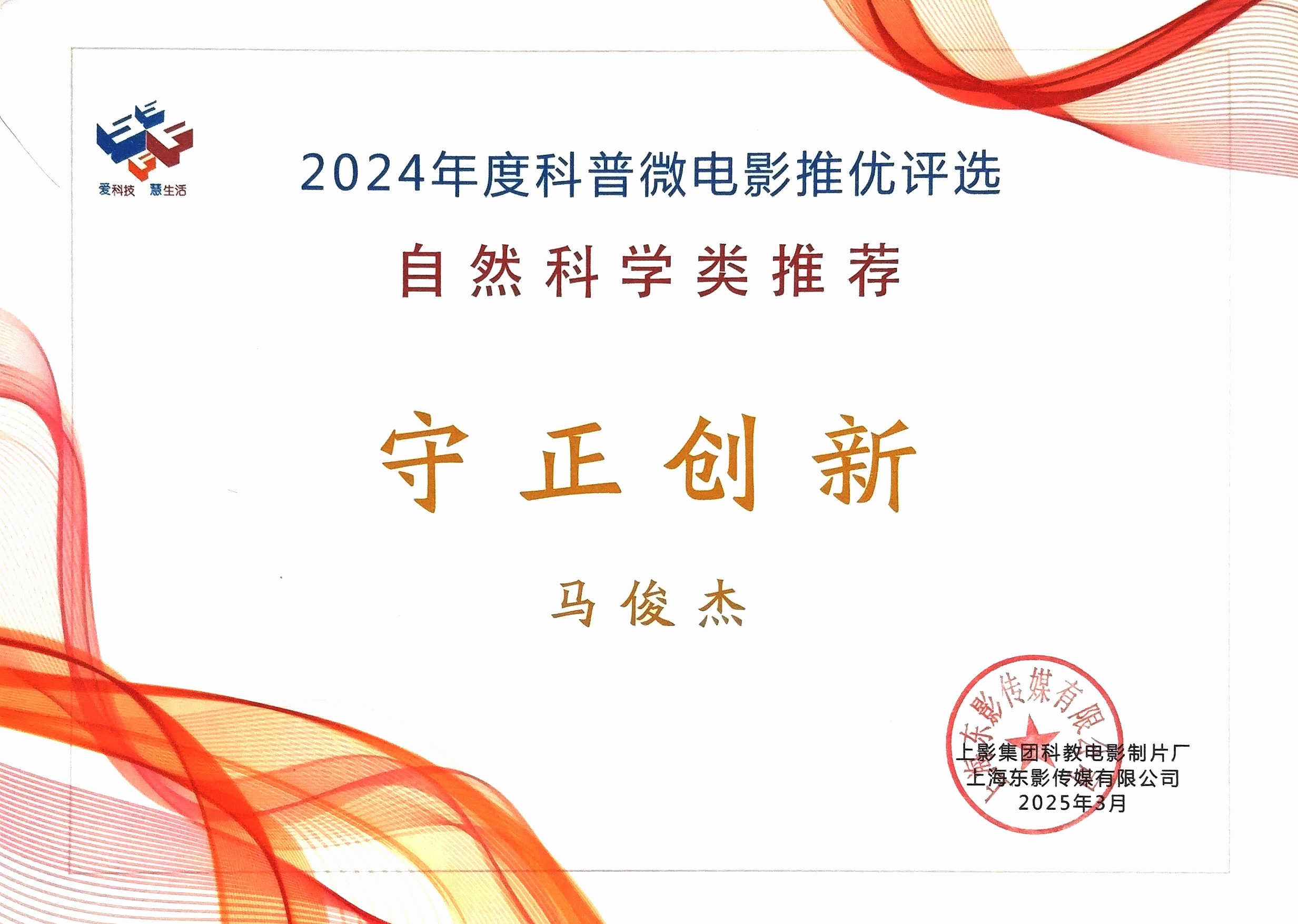 去年,由我院马俊杰老师创作的《守正创新》纪录片被认定为“典赞·科普江苏”2024年度江苏省科普成果(十大科普视频),并获得江苏省优秀科普作品及江苏省科普公益作品大赛双一等奖,同时赢得2024年度上影集团科教电影制片厂科普微电影推优评选(自然科学类)的推荐。