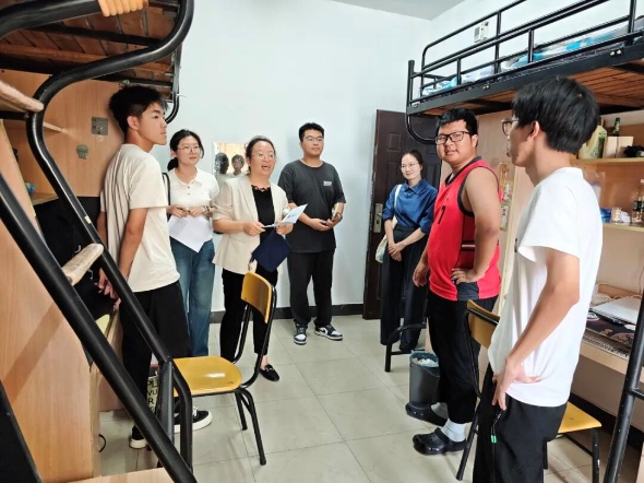 下午,学院领导、辅导员和班主任深入新生宿舍,看望2025级新同学,以暖心关怀助力他们开启大学生活。
