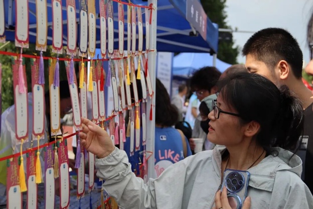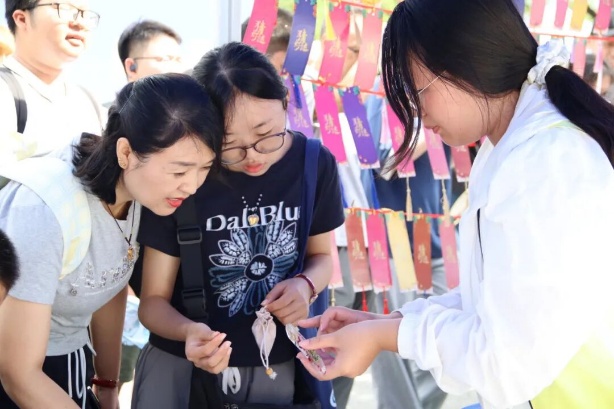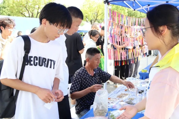 外场文化体验街,中医学院师生们支起展台,电子脉诊仪巧妙展示传统诊法的现代应用,草本拓染、方剂标本展则让中药知识变得生动有趣。定制有院徽的钥匙扣、帆布袋等文创礼品,也进一步增强了新生的归属感与身份认同。