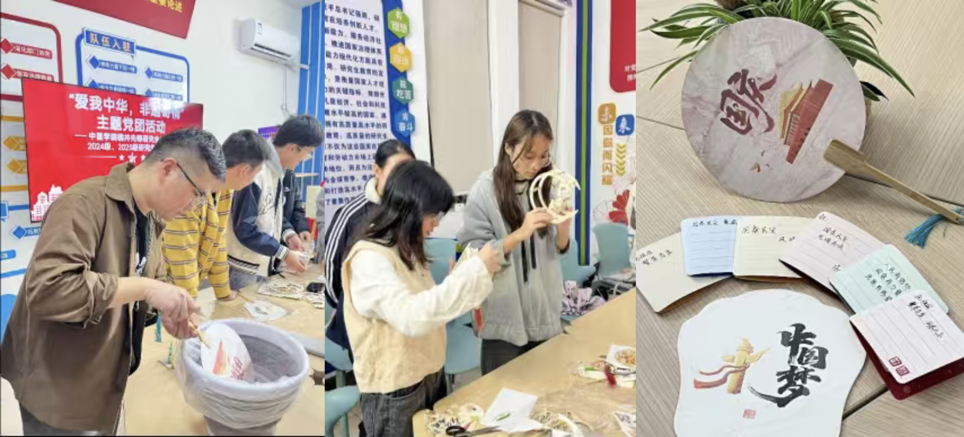 为深入学习贯彻习近平新时代中国特色社会主义思想,弘扬红色精神与中华优秀传统文化,2025年10月19日,中医学院橘井先锋党支部联合2024、2025级研究生团支部于决明园一站式社区组织开展“爱我中华,非遗传情”主题党团活动。活动分为理论学习、红色观影、非遗体验三大板块,通过多元形式推动党建与专业特色、文化育人深度融合。