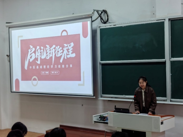陈慧颖同学围绕绩点认知、专业课学习与心态调整三个方面展开分享。她首先介绍了绩点的构成与重要性,并提出“稳抓平时分、重视期中考、冲刺期末考”的阶段性策略。在中医基础理论的学习中,她强调课前预习与课后复盘同样关键,既要筑牢基础,也要做好期末的系统复习,做到厚积薄发、高效备考。此外,她鼓励同学们端正学习心态,不为绩点所困,回归医学初心。