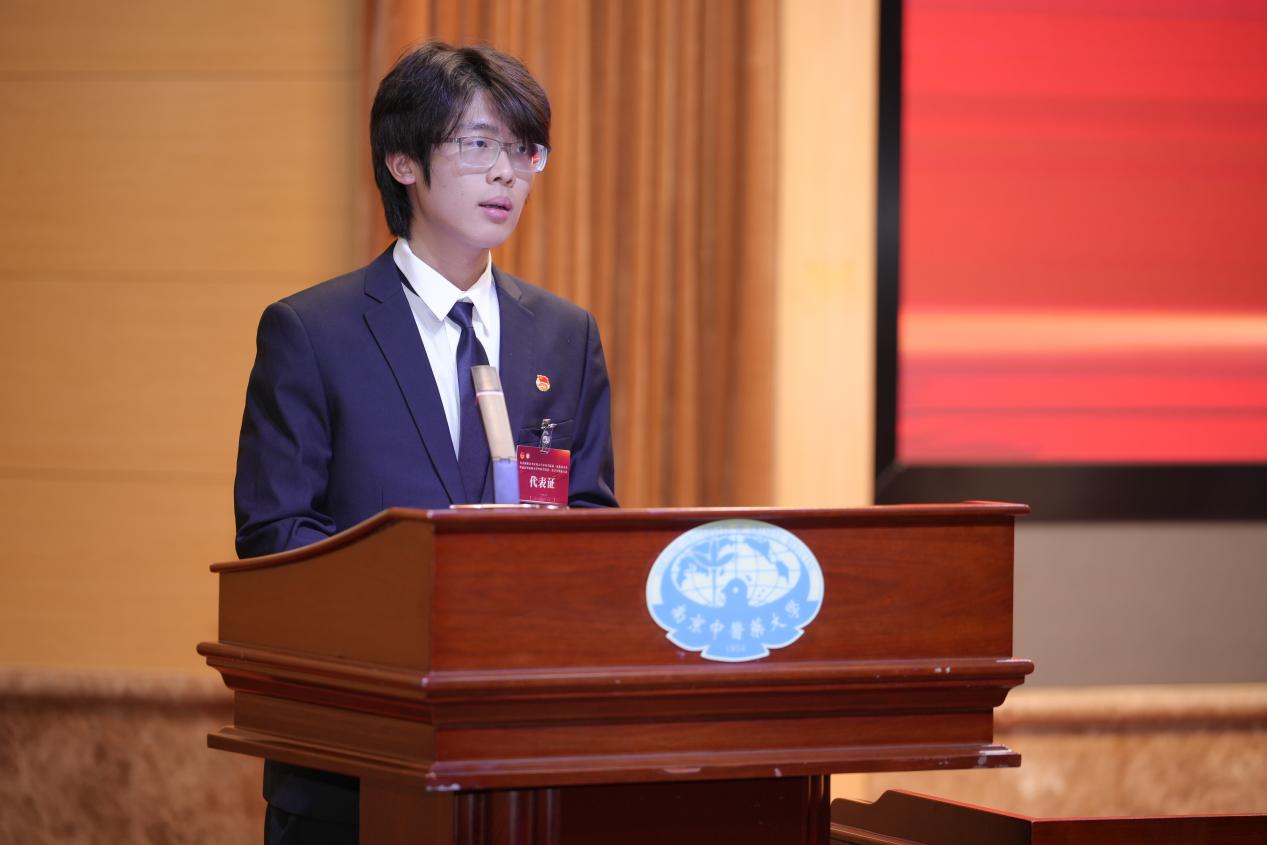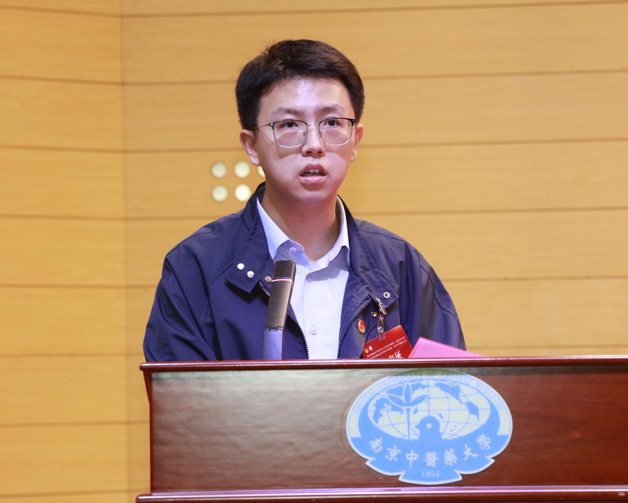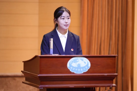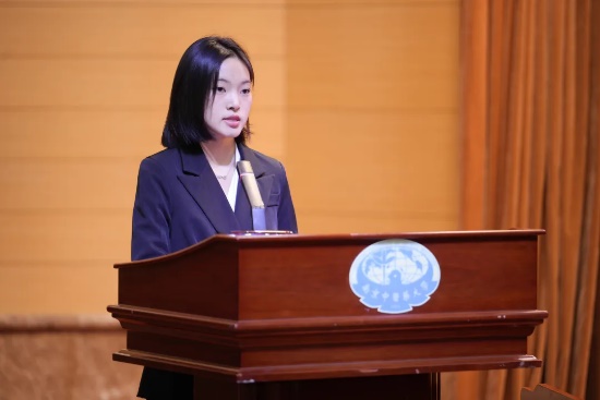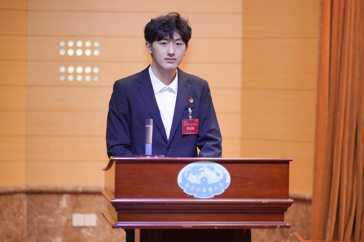 南京中医药大学学生会主席团成员操瑞颖发言,她谈到,中医学院学生会在思想引领、组织建设、学风建设、权益维护、文体活动、创新创业等方面取得显著成效,认为学生会工作必须将聚焦思想引领、筑牢青年信仰根基作为首要任务,通过深化组织改革激发内生动力,坚守服务初心提升同学获得感,最终团结引领广大青年学子成长为堪当民族复兴大任的时代新人。