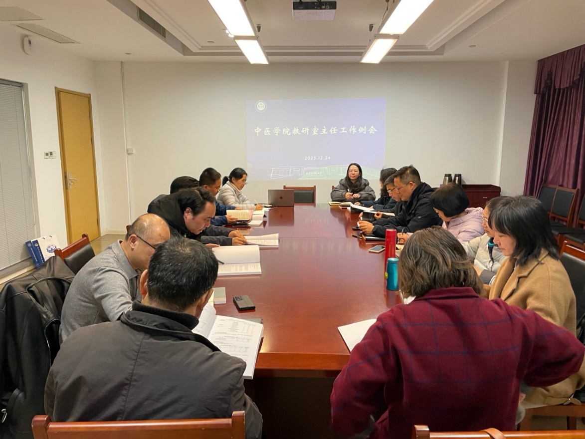 12月24日下午,中医学院在丰盛楼101会议室召开教研室主任工作例会,专题部署期末课堂教学、考试监考及下学期教学工作安排等重点工作。各教研室主任及相关负责人参会,会议由副院长谷鑫主持。