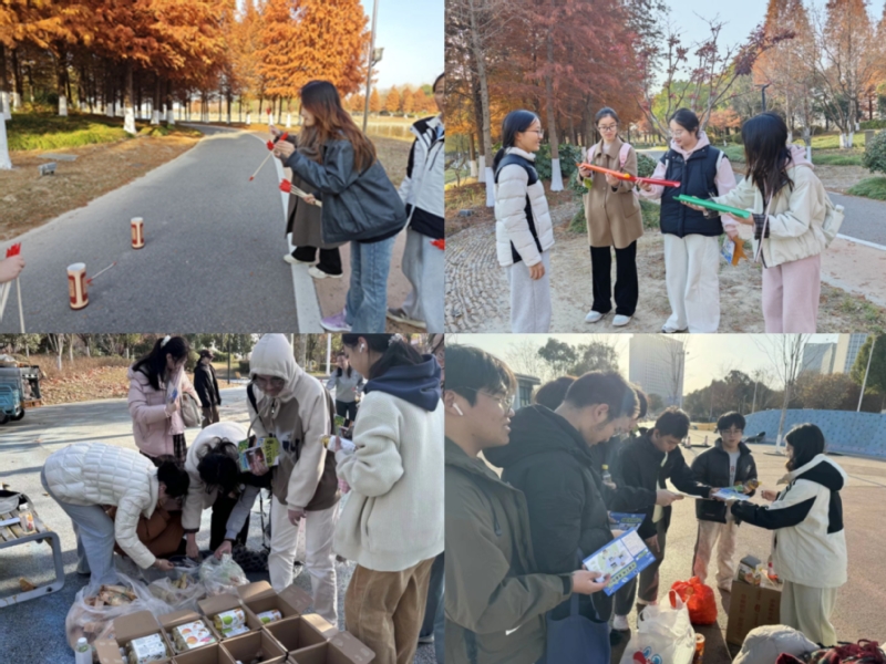 活动紧扣红色主题,设计兼具趣味性与教育性。“投壶忆英烈”让同学们在传统游戏中感悟红色精神;“接力传薪火”通过团队协作传递使命;“问答学党史”以互动形式重温峥嵘岁月;“慧眼识红印”则借助历史画面深化对重大事件的认识。各打卡点与沿途均设有补给站,为同学们提供保障。