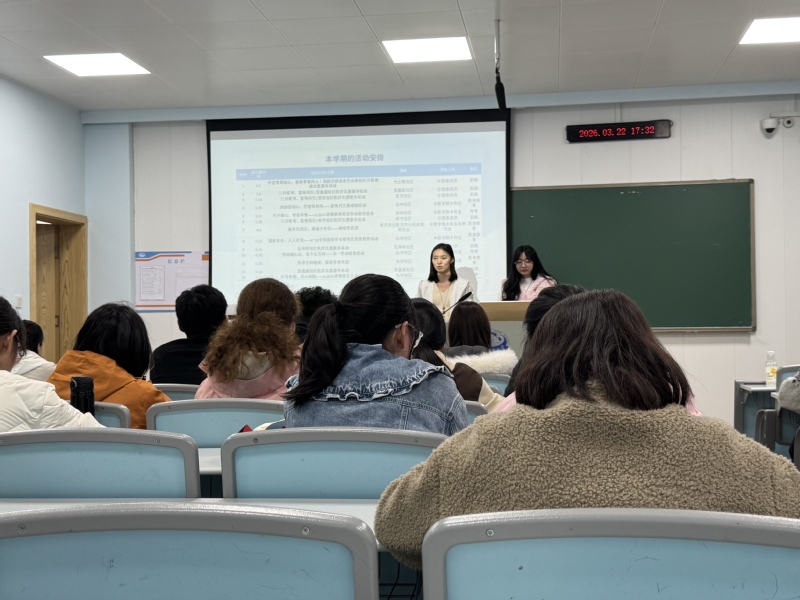 学院学工办主任、分团委书记陆家康老师和分团委成员于B13-101教室参加此次例会。