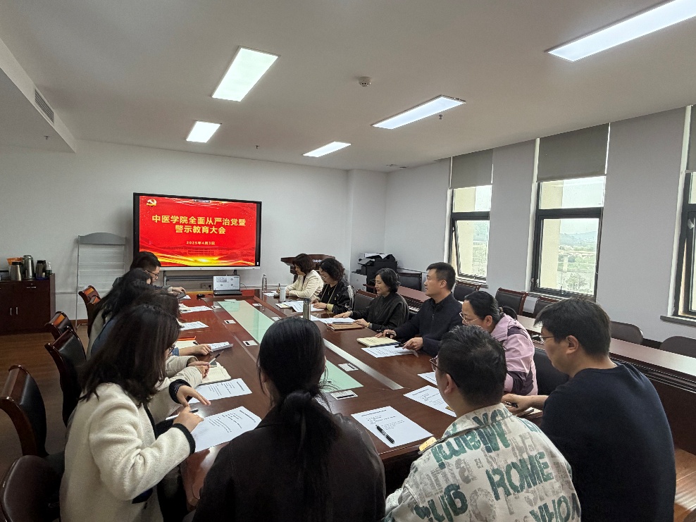 4月3日,学院召开全面从严治党暨警示教育大会。全体院领导、院党委委员、各党支部书记和纪检委员参加会议。会议由学院党委副书记周琼主持。